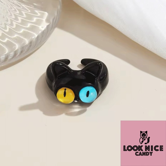 LOOK NICE CANDY 黒猫モンスターリング キャッツアイ フィンガージュエリー オープンリング パーティー