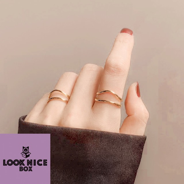 LOOK NICE BOX ダブルリング イエローゴールド ミニマル サイズフリー