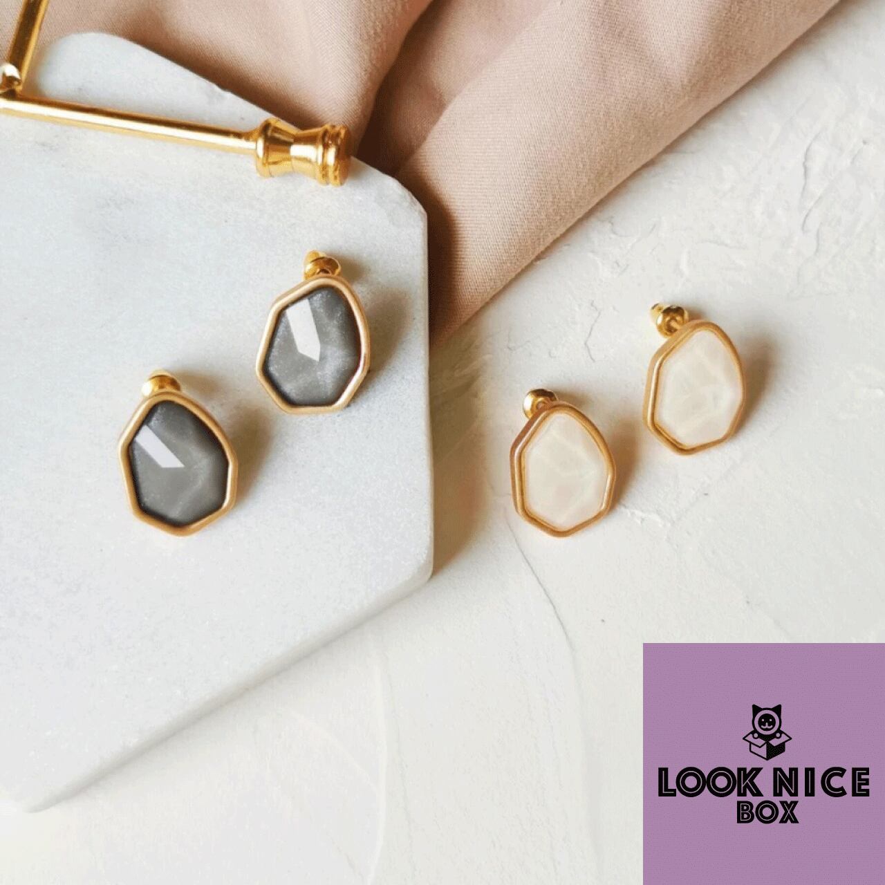 LOOK NICE BOX スクエアピアス ホワイト スタッドタイプ