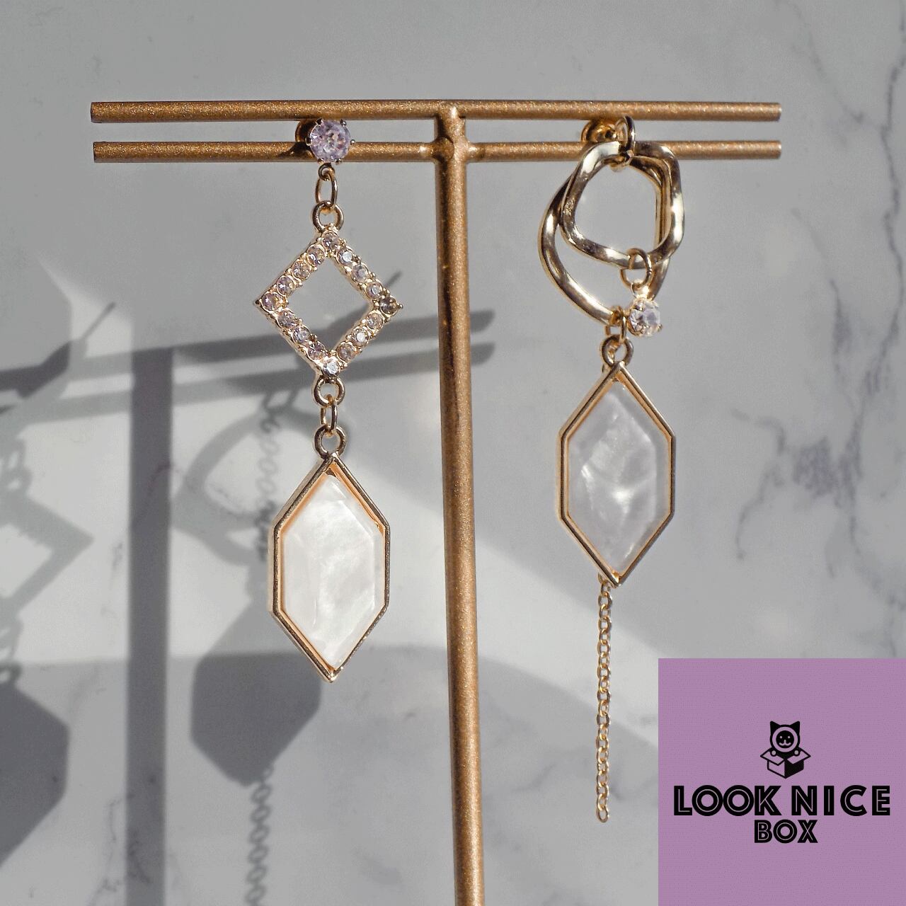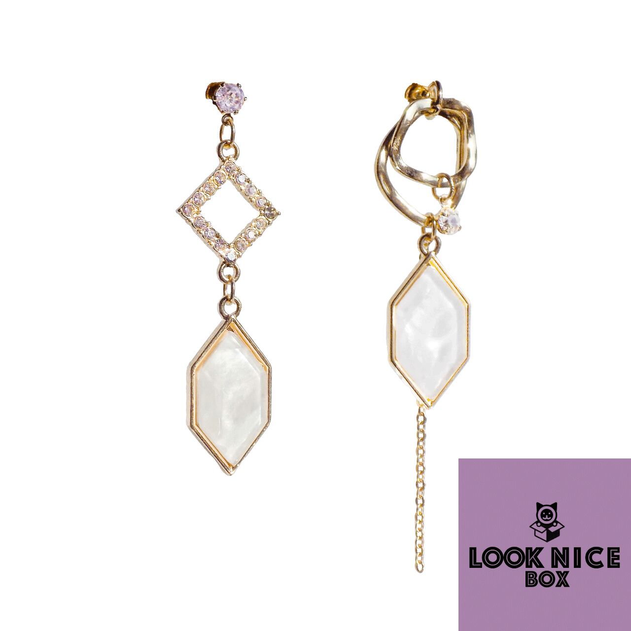 LOOK NICE BOX スクエアピアス ホワイト スタッドタイプ