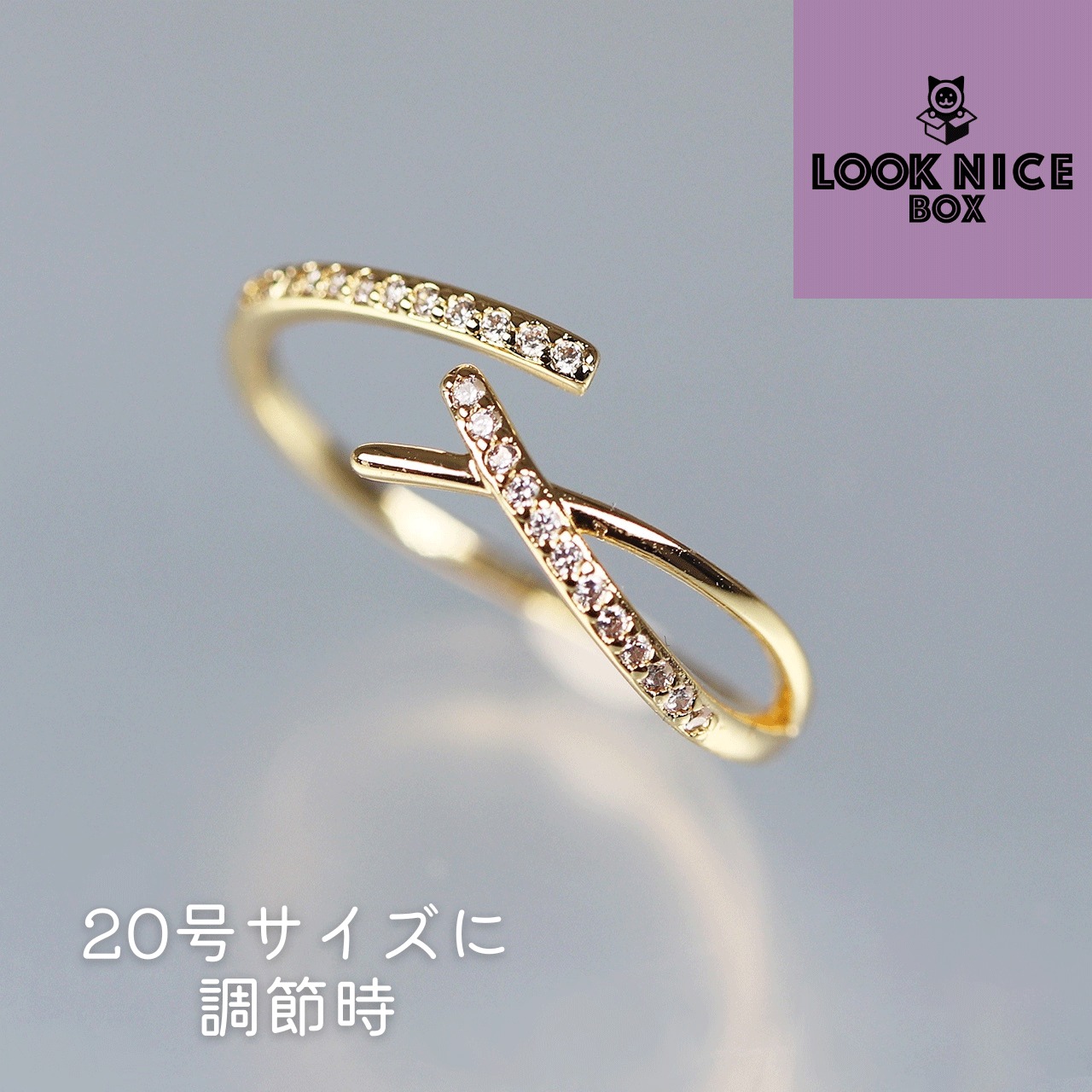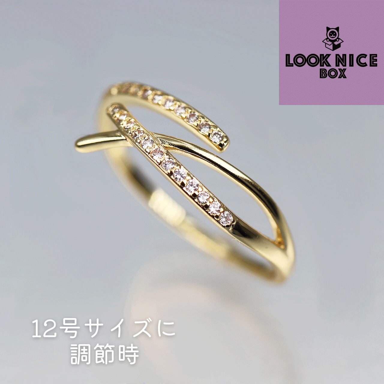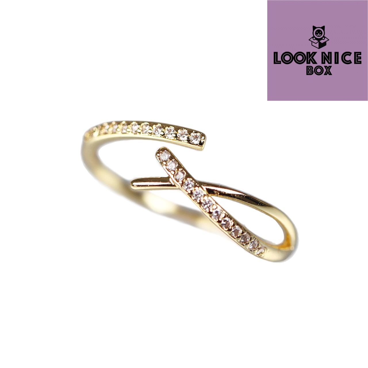 LOOK NICE BOX クロスリング イエローゴールド silver925 キュービックジルコニア サイズフリー