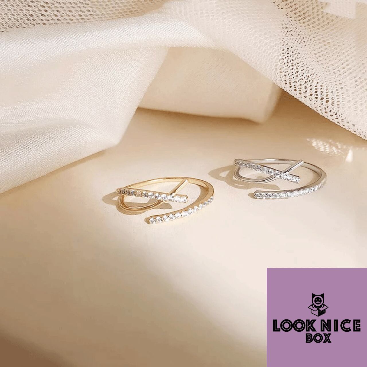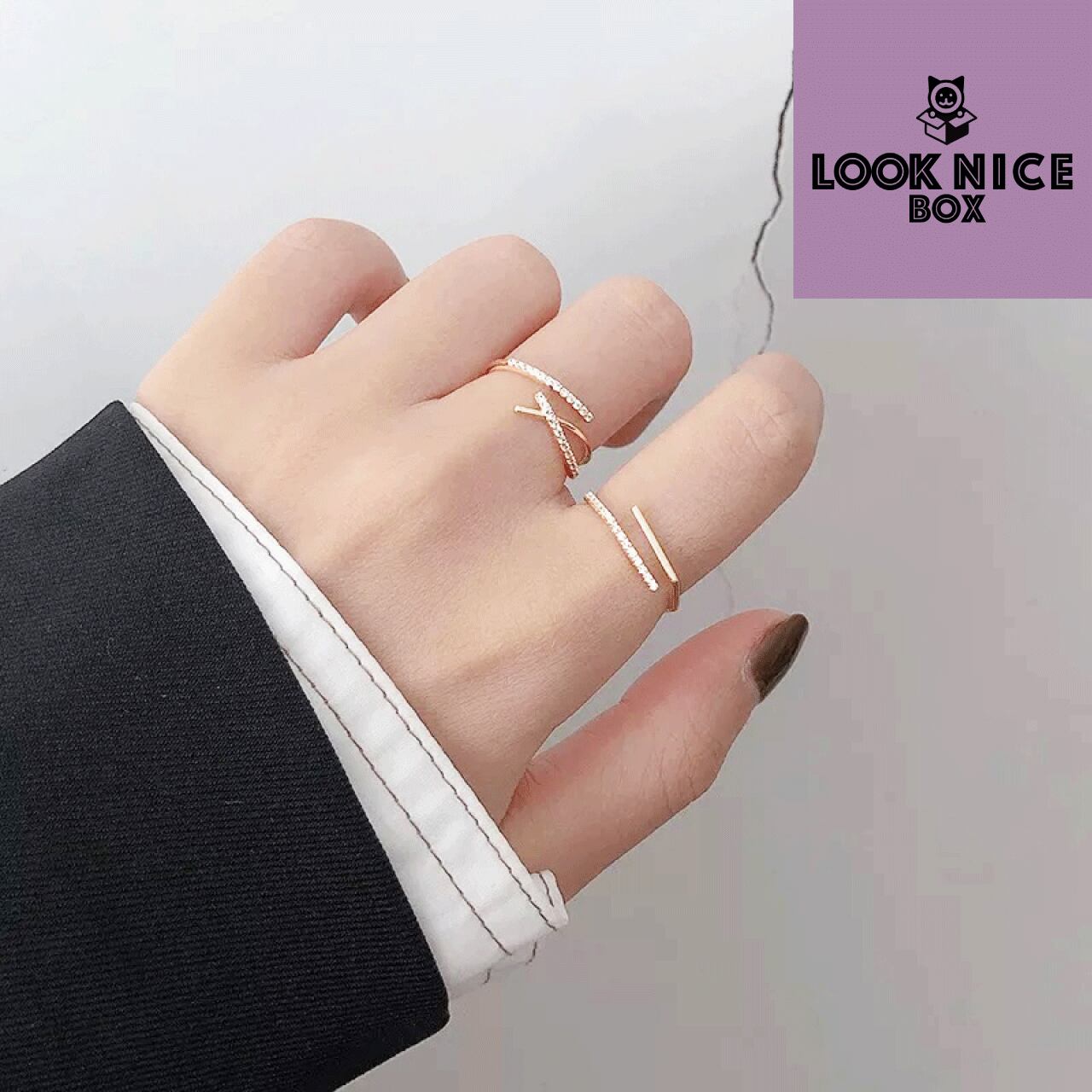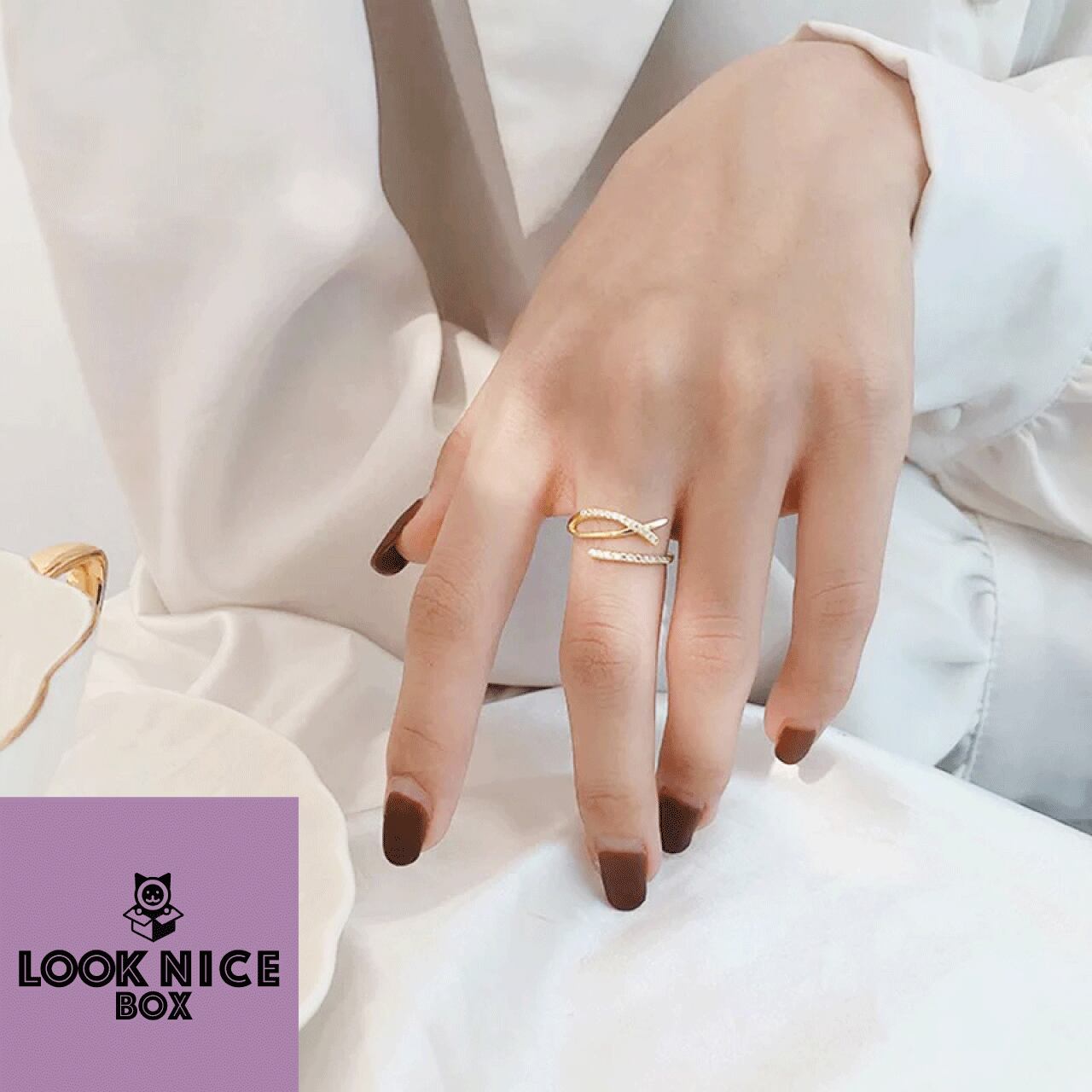 LOOK NICE BOX クロスリング イエローゴールド silver925 キュービックジルコニア サイズフリー