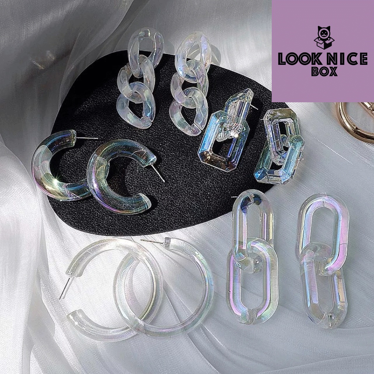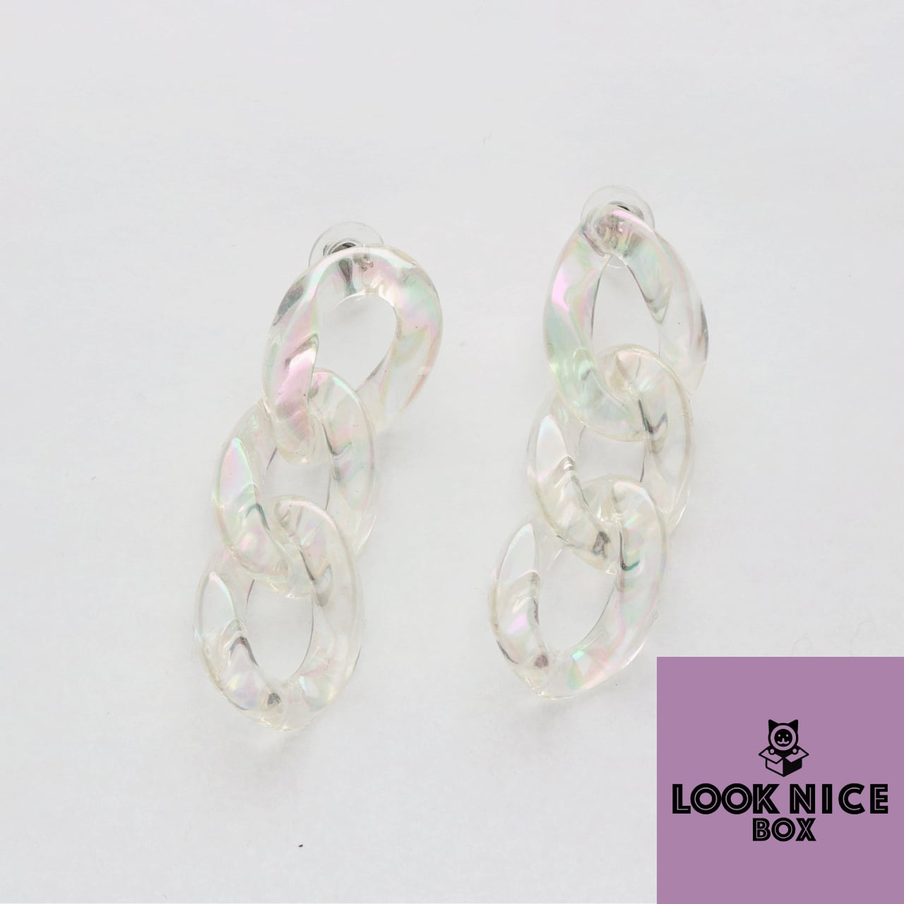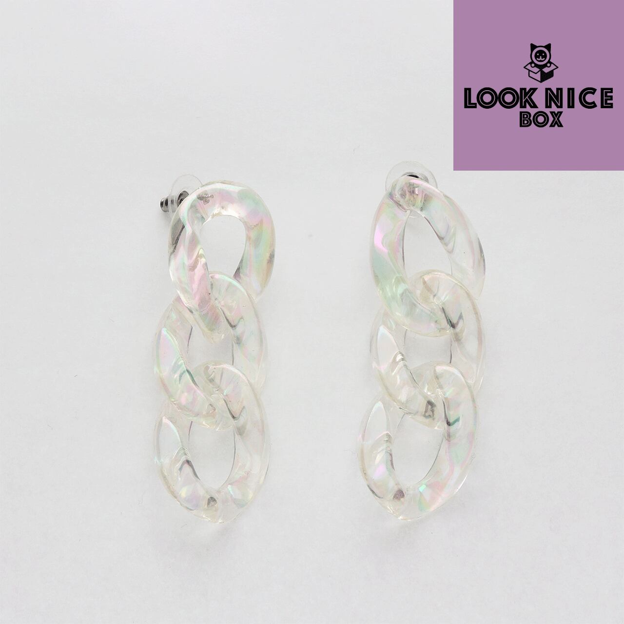 LOOK NICE BOX チェーンピアス レインボーホログラム クリア アクリル