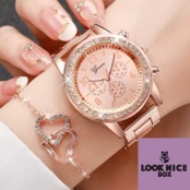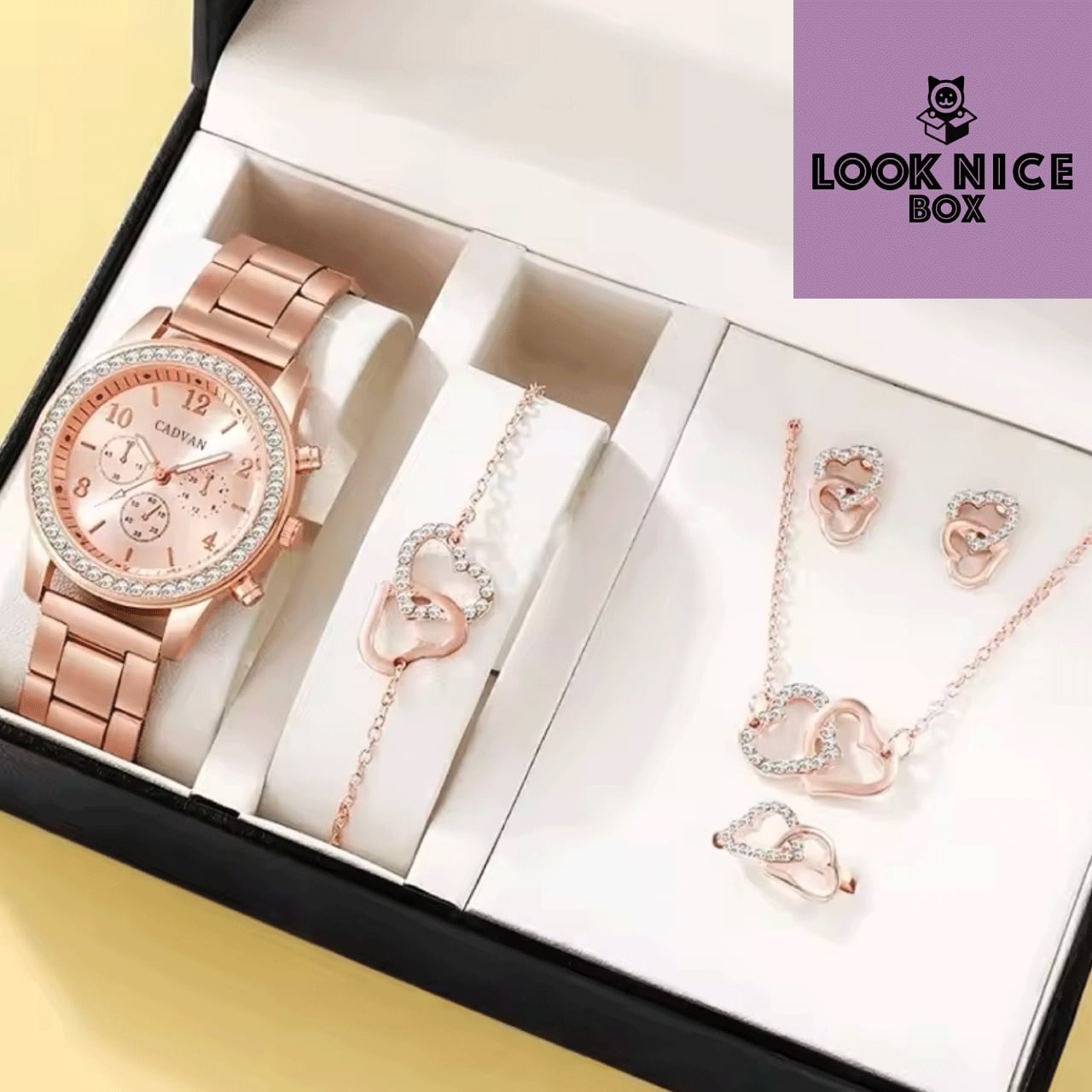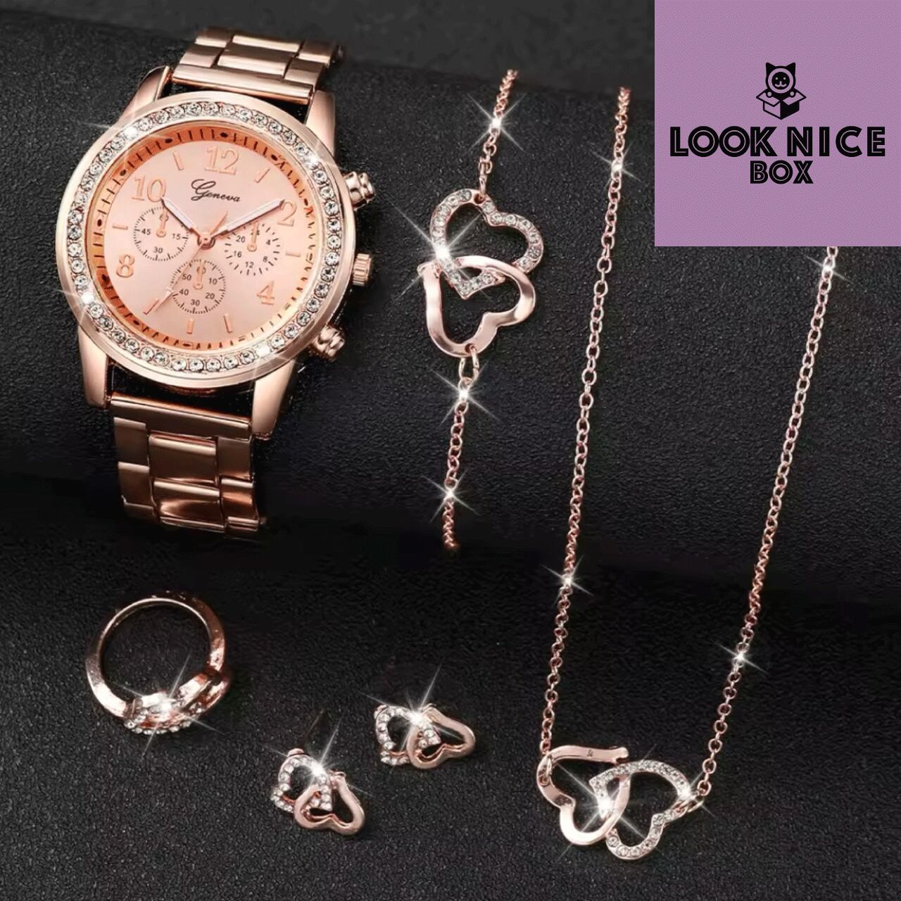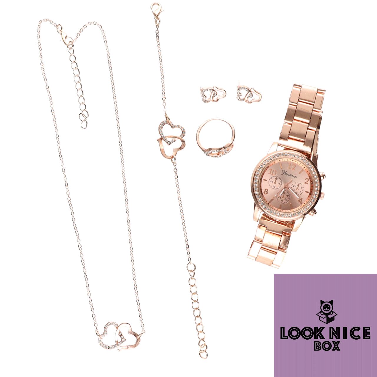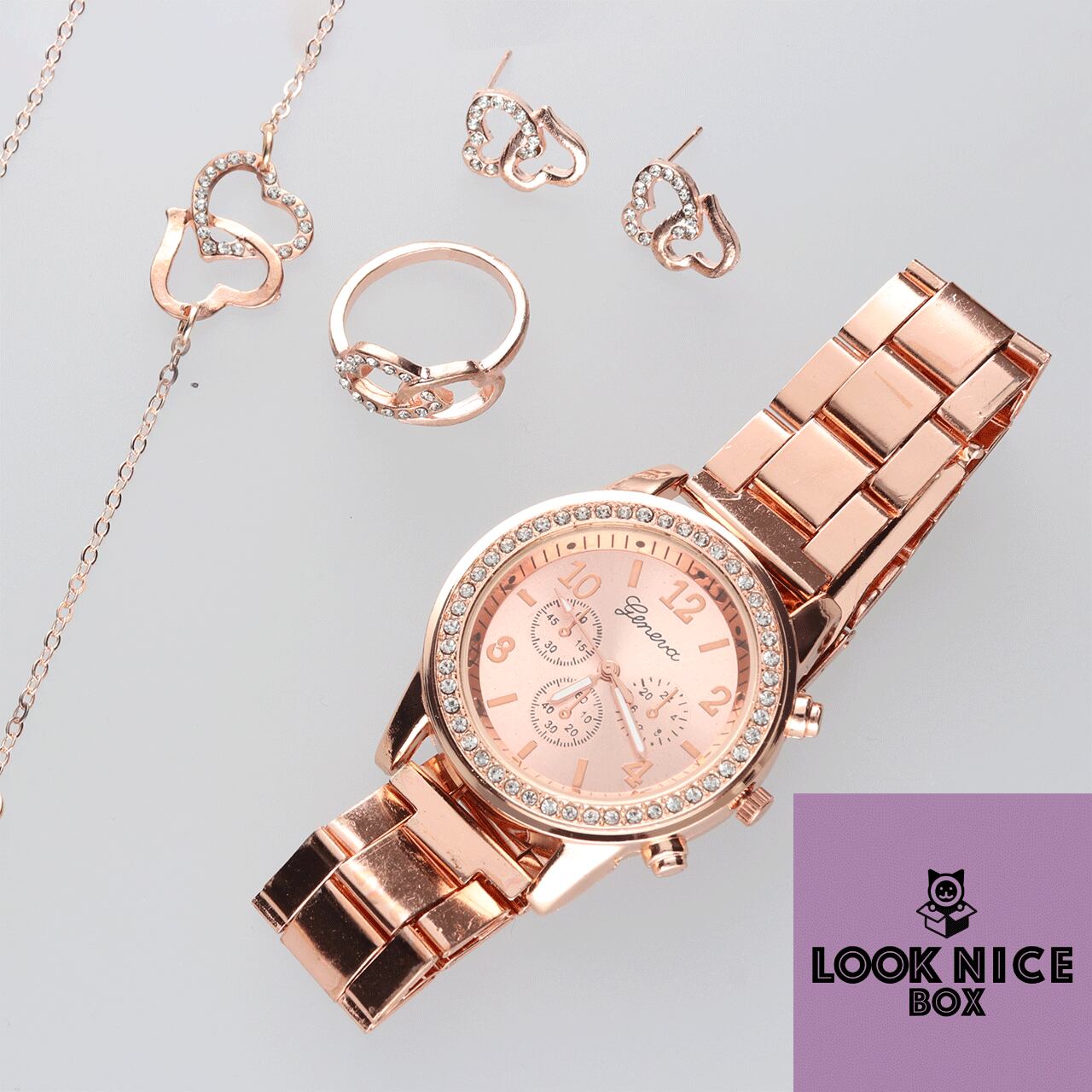 LOOK NICE BOX ピンクゴールド腕時計 トータルコーディネート ネックレス リング ラインストーン キラキラ