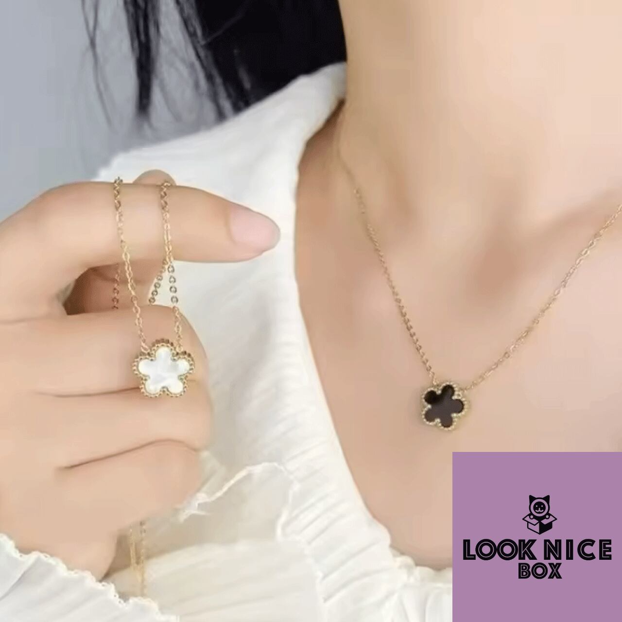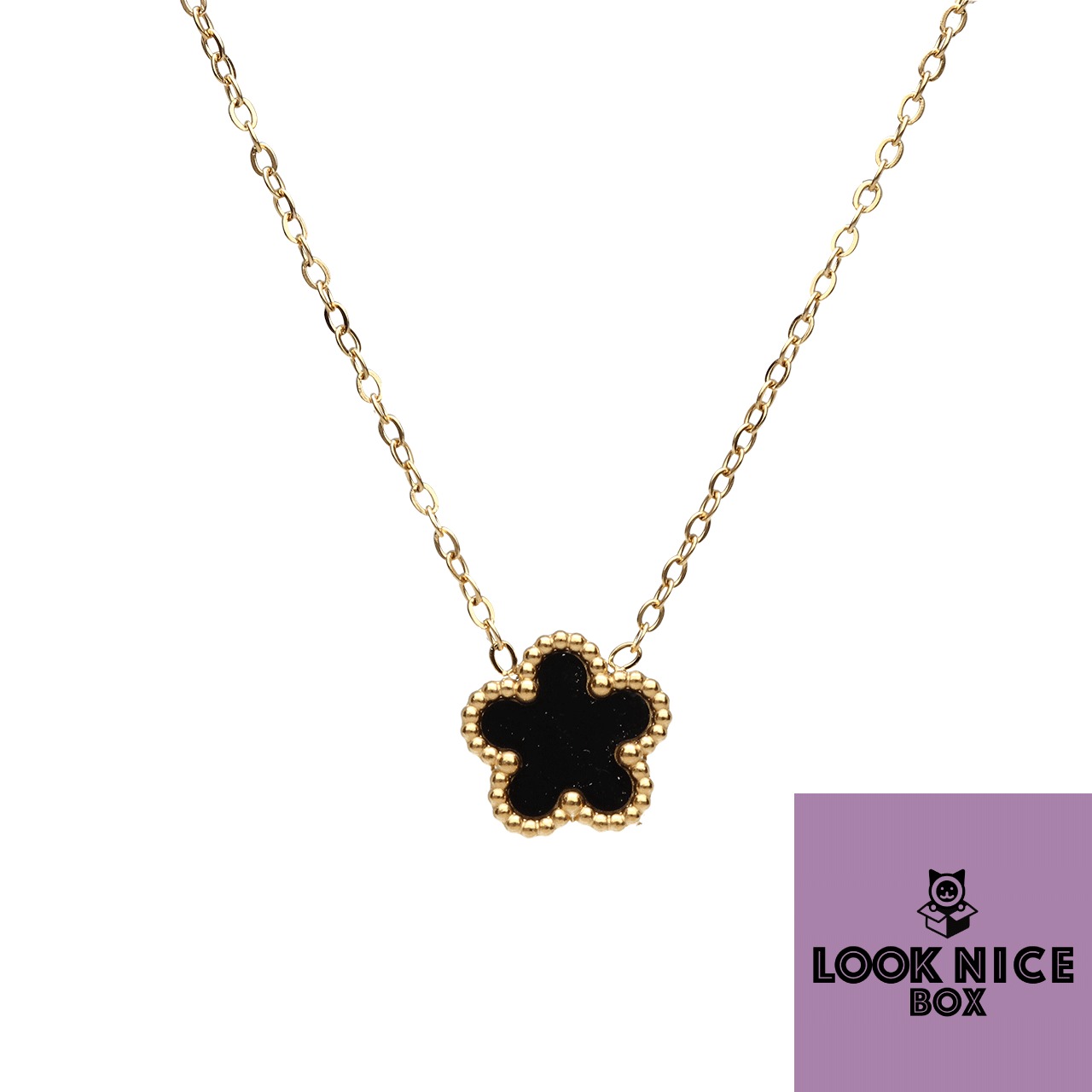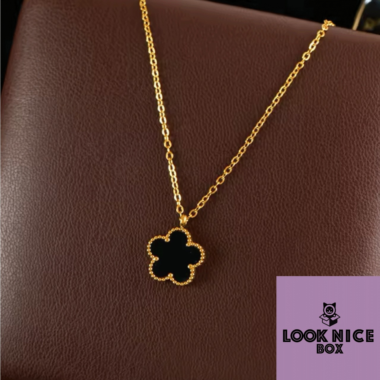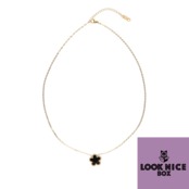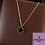 LOOK NICE BOX ネックレス ブラック ゴールド 結婚式 K18メッキ 四葉のクローバー 花 フラワー ラッキーモチーフ アレルギーフリー