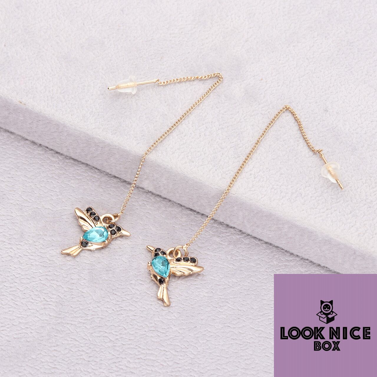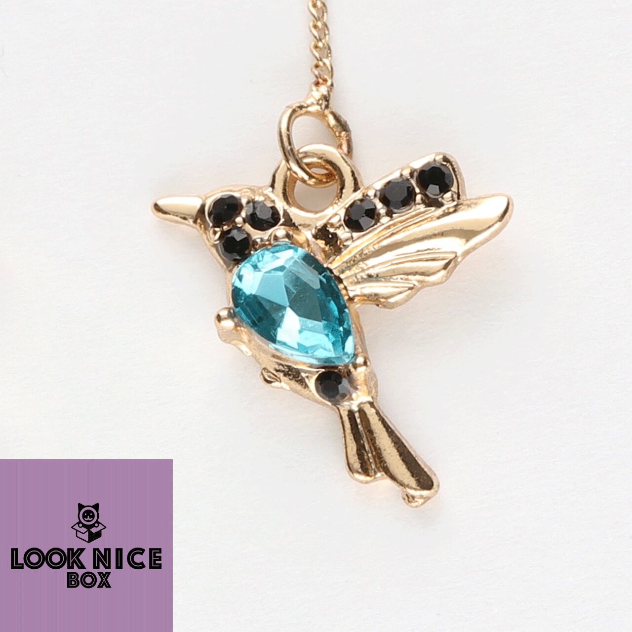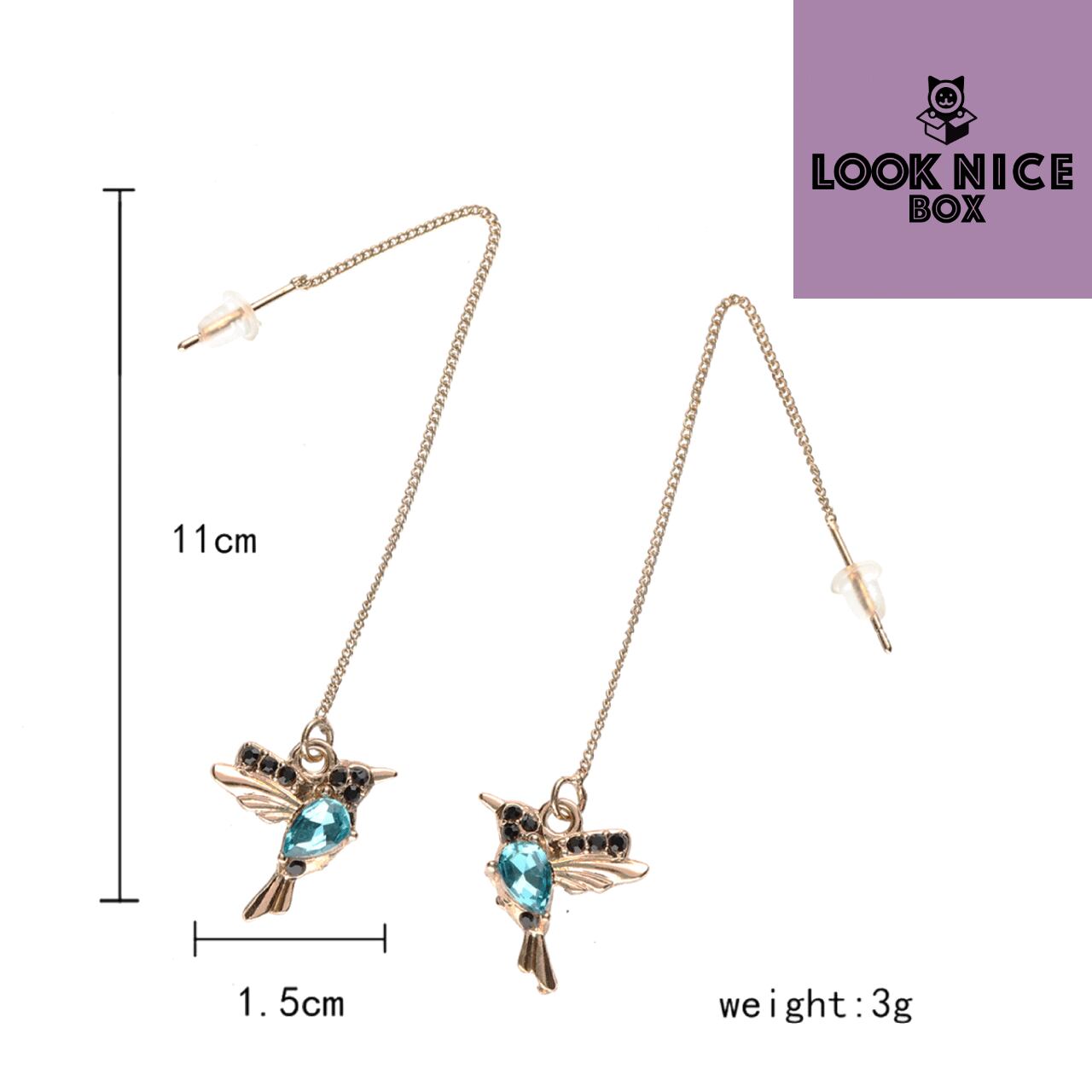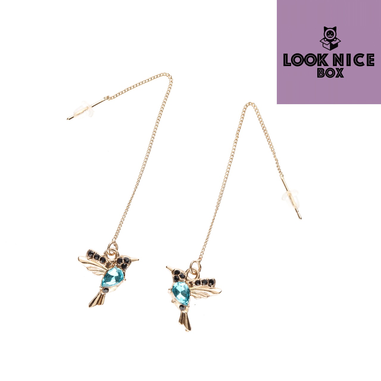 LOOK NICE BOX ロングピアス ゴールド チェーンピアス パーティ コマドリ モチーフ カラーストーン