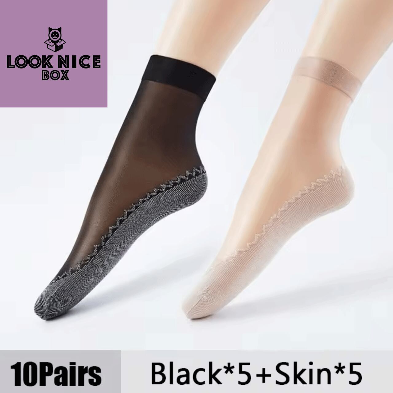 LOOK NICE BOX ローカットストッキング 2色カラー 素足美人 10足セット 滑り止めグリップ付 サイズフリー 通気性抜群 靴下 黒 スキン