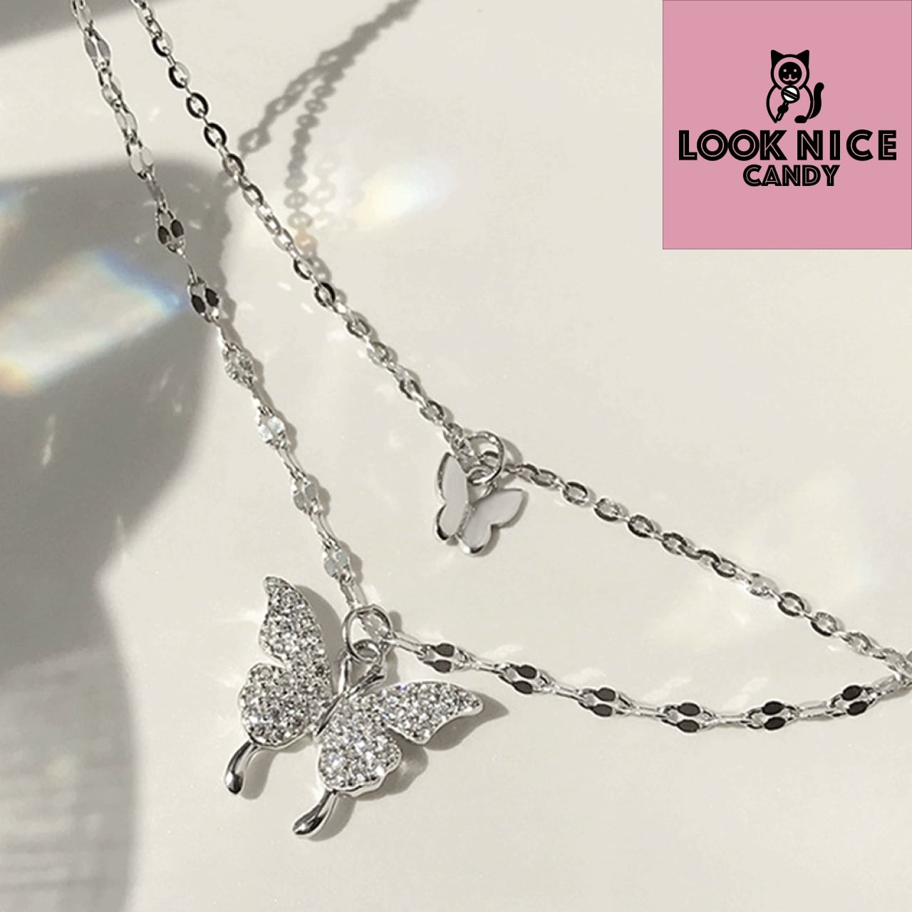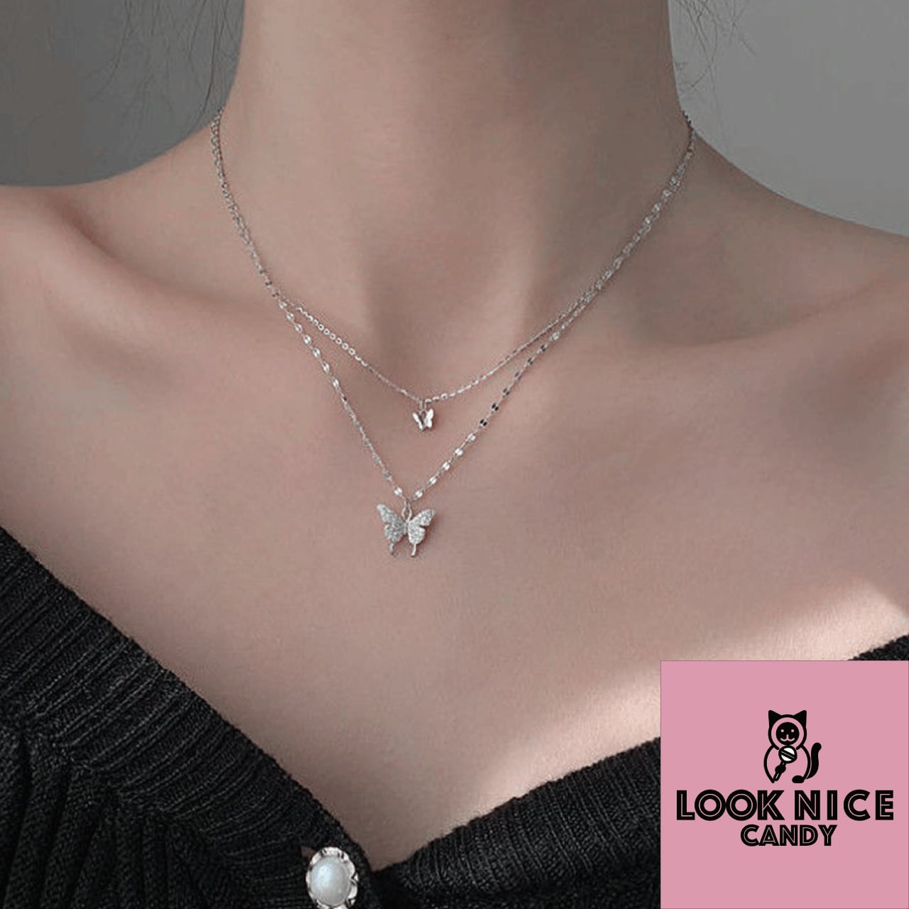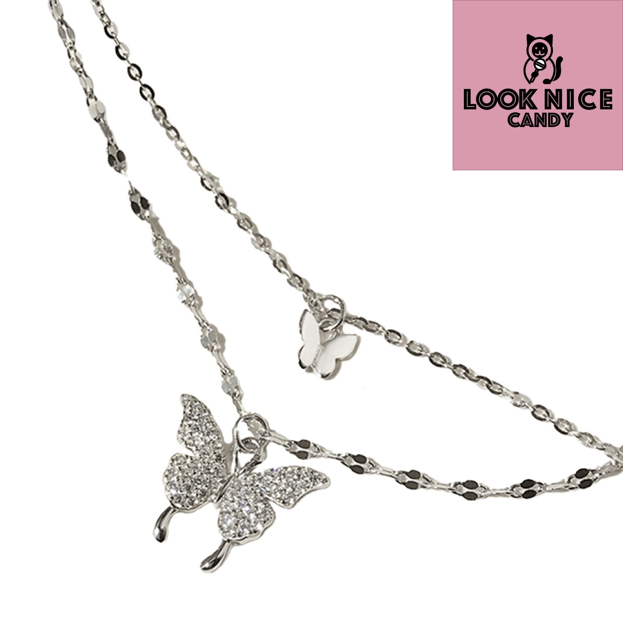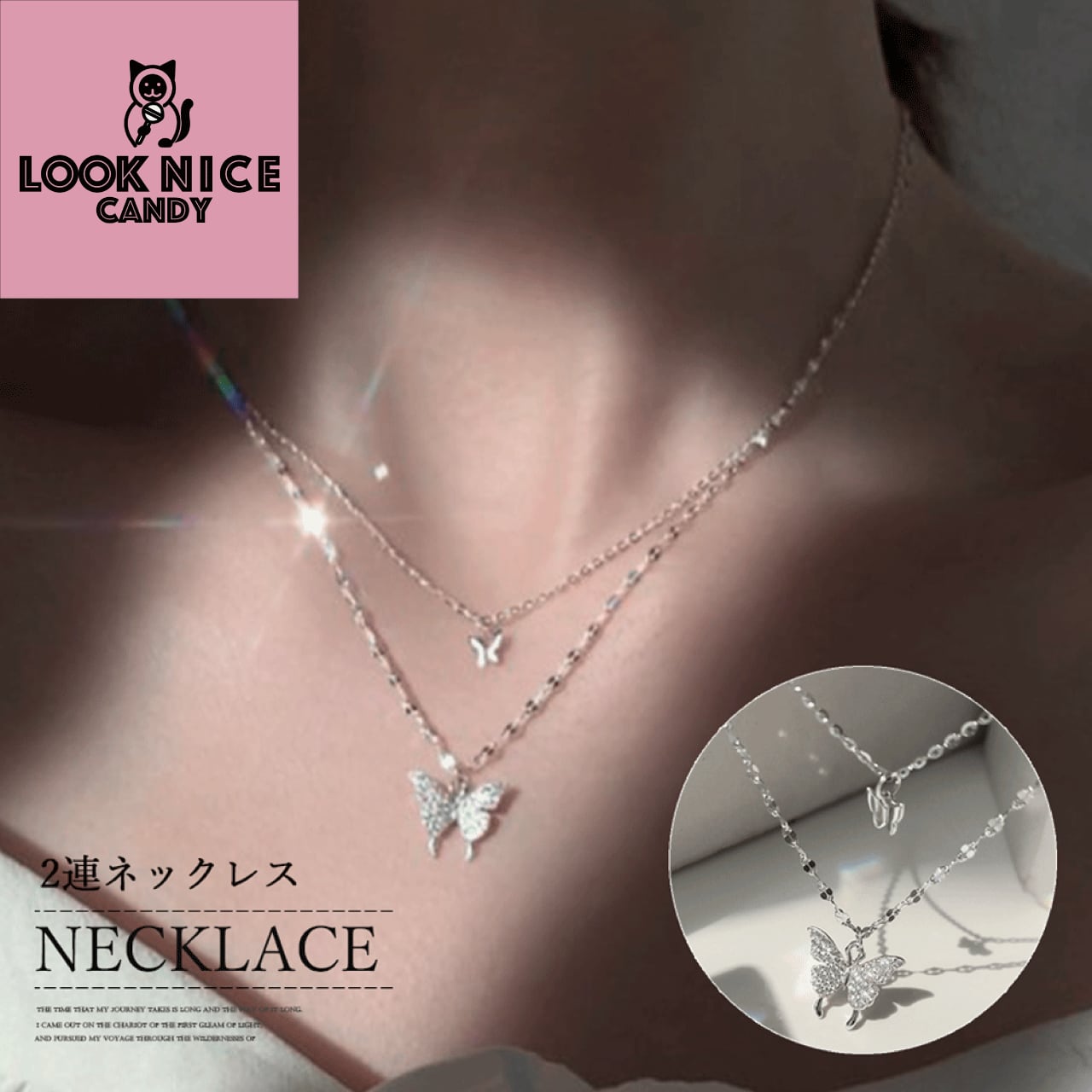 LOOK NICE CANDY ネックレス バタフライ 蝶々 モチーフ 2連 かわいい