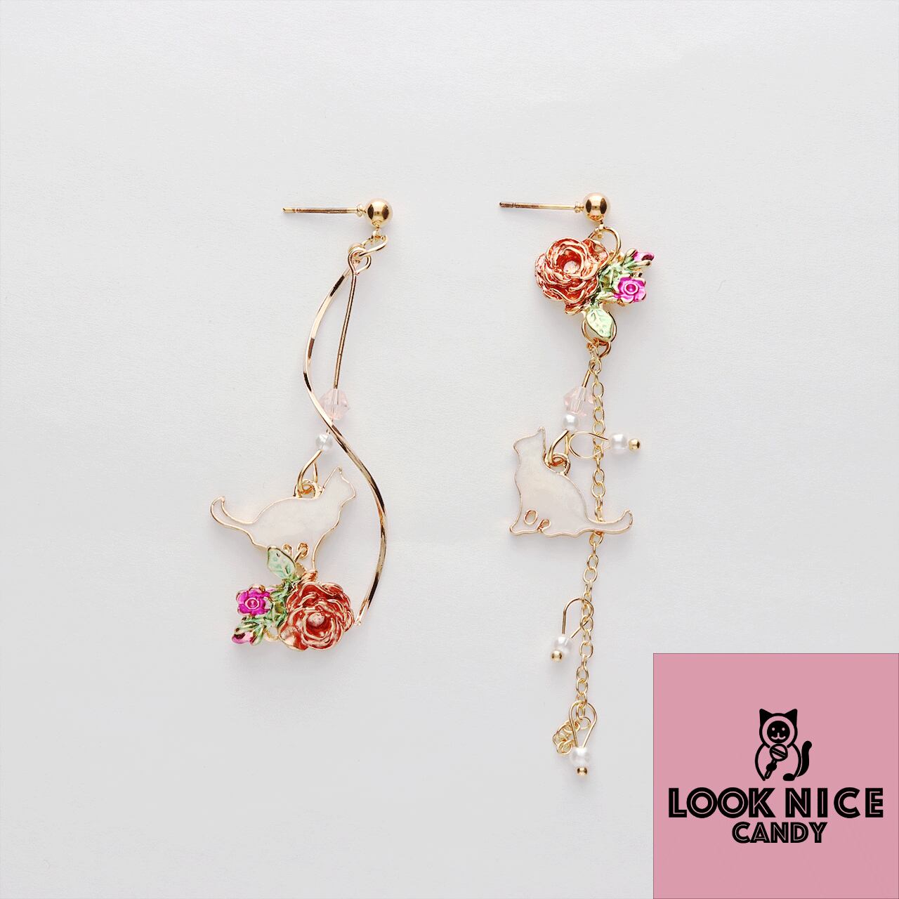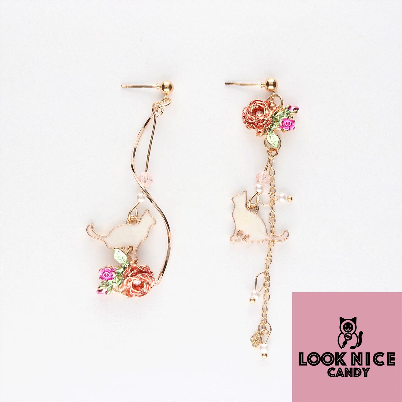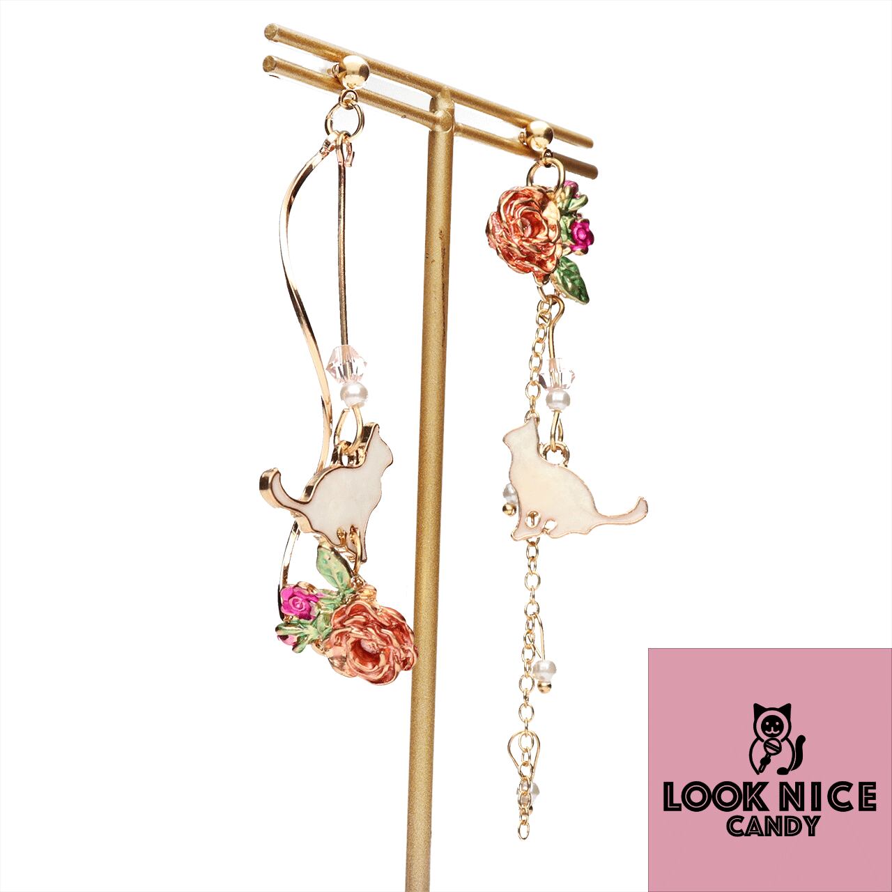 LOOK NICE CANDY スタッドピアス ネコ かわいい モチーフ パール バラ 薔薇 ローズ