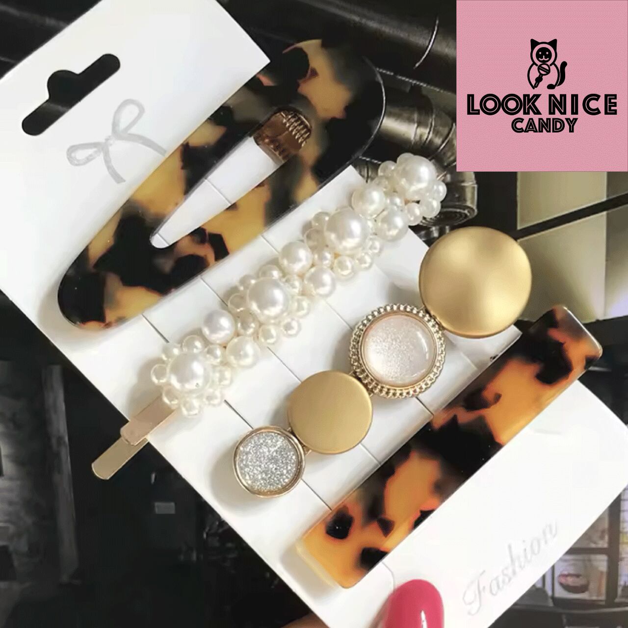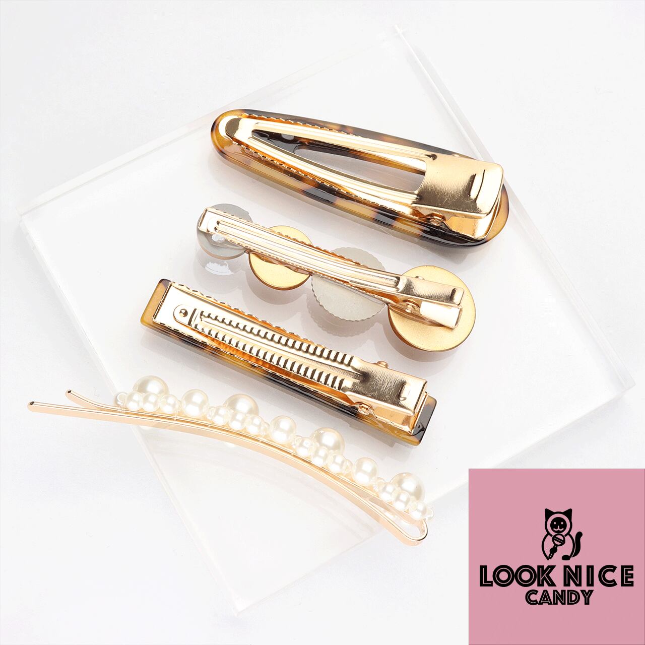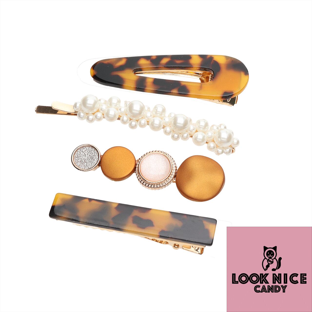 LOOK NICE CANDY ヘアクリップ 4個セット ベッコウ風 かわいい キレイ パール 大人 ヘアピン