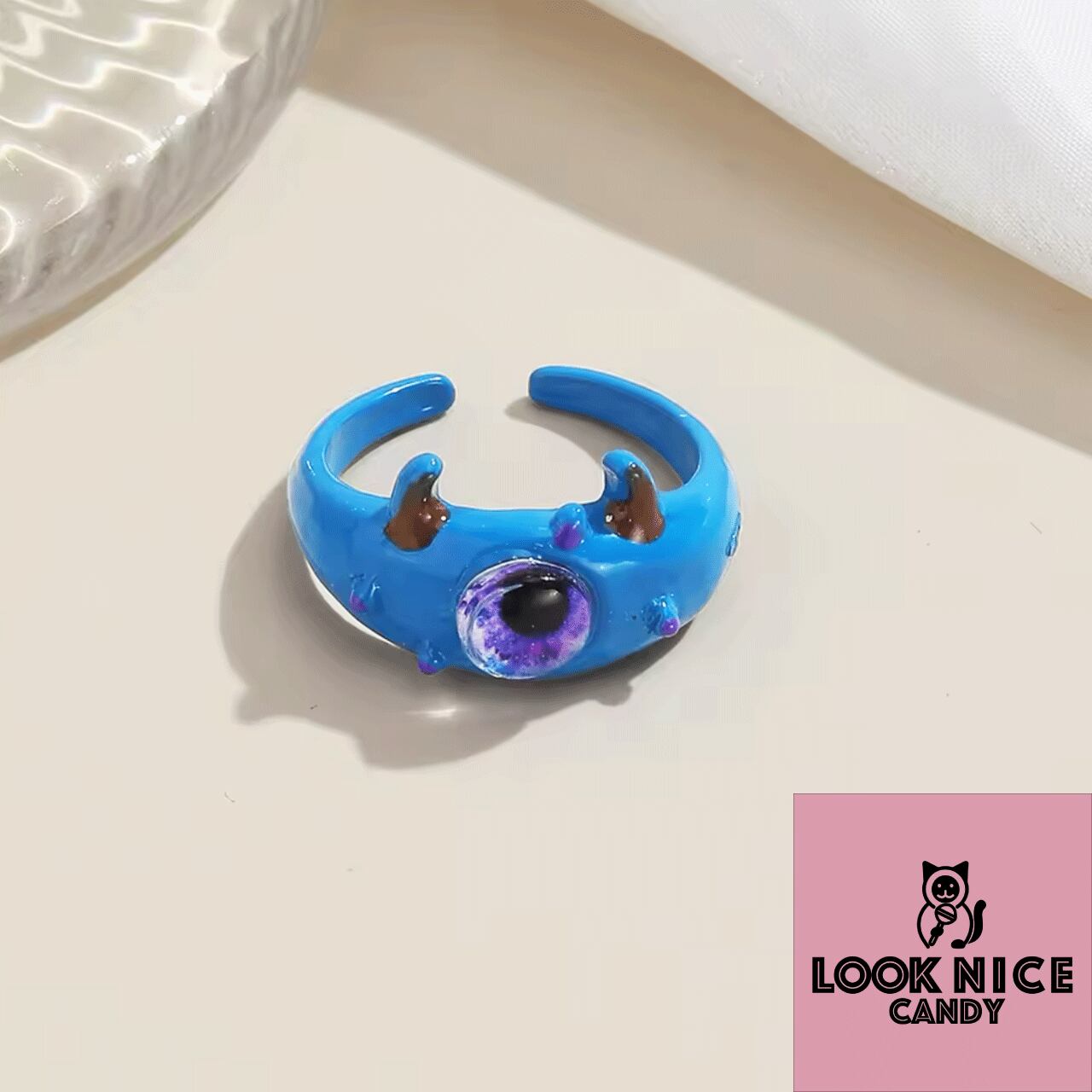 LOOK NICE CANDY ブルーモンスターリング サードアイ フィンガージュエリー オープンリング パーティー