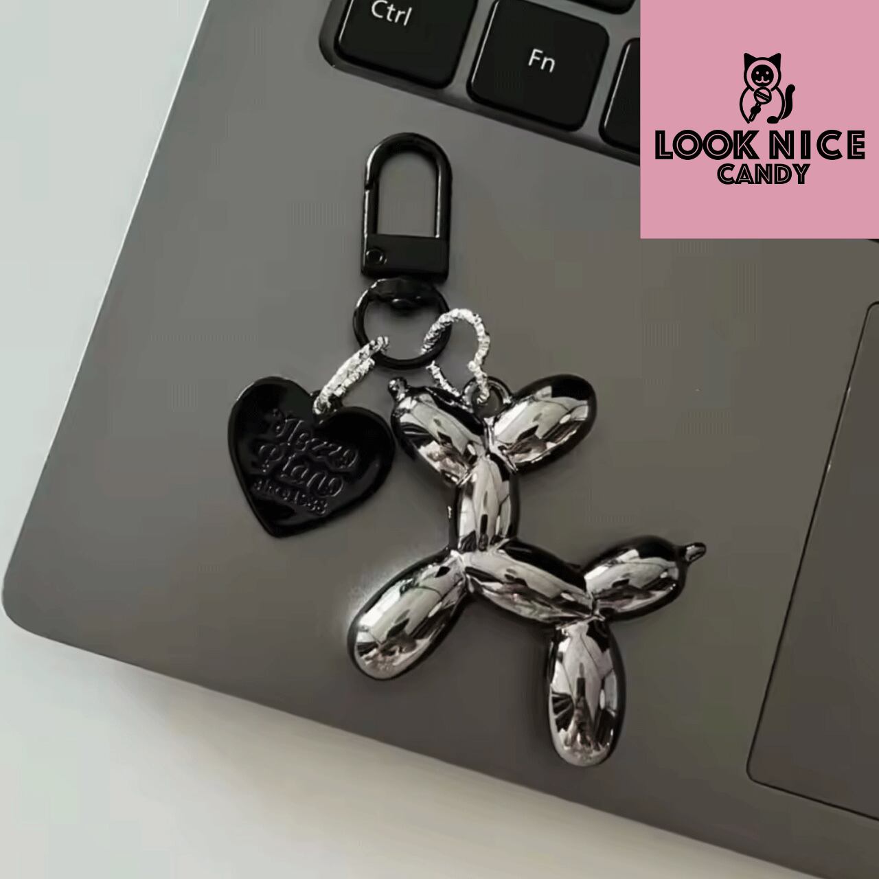 LOOK NICE CANDY バルーンドッグチャーム ブラック レインボー キーホルダー かわいい