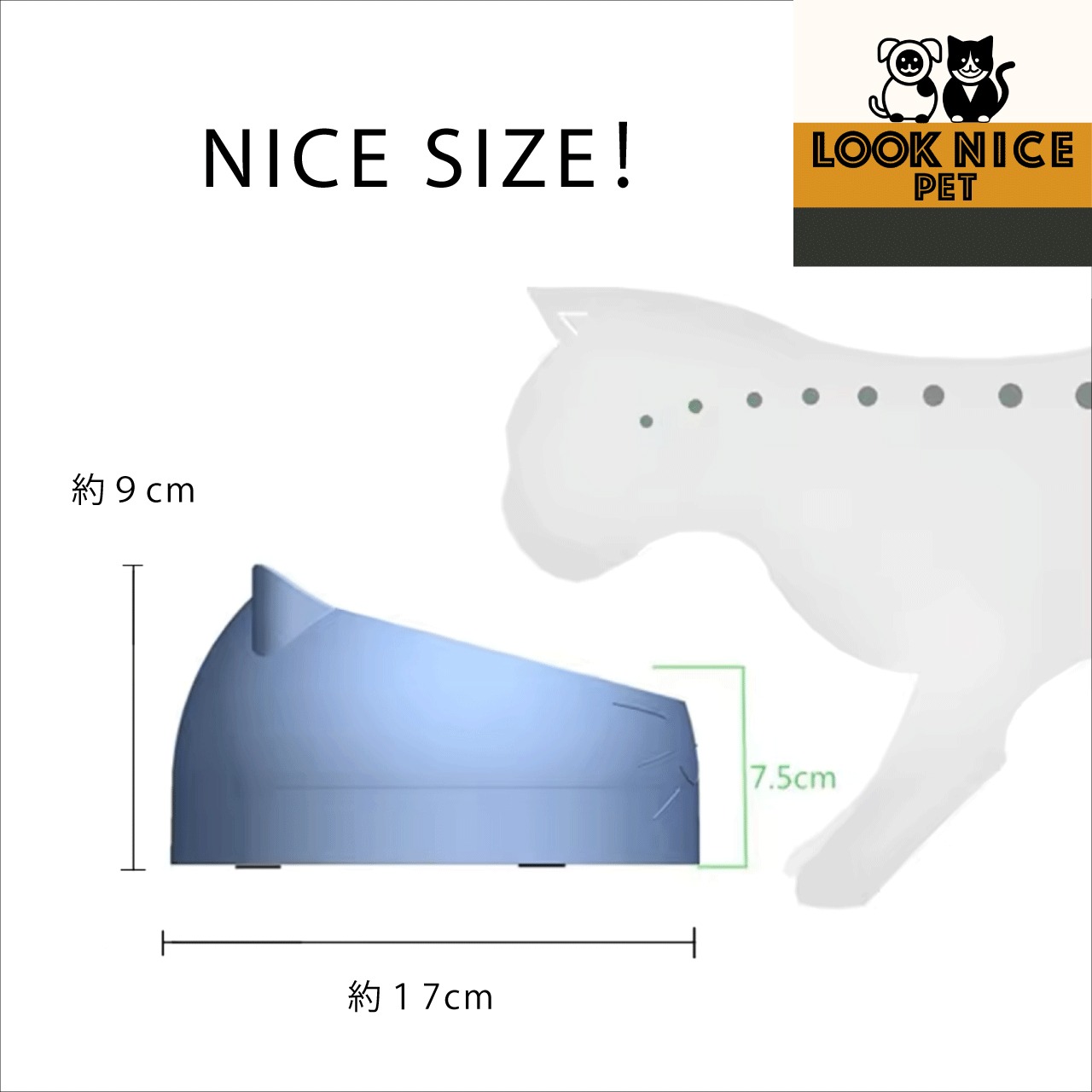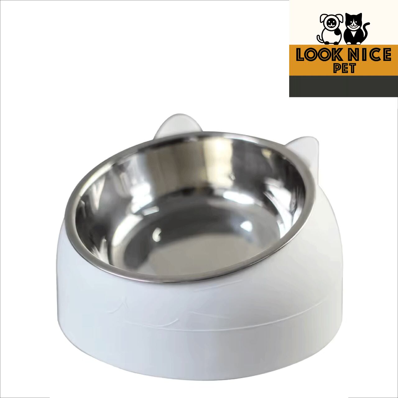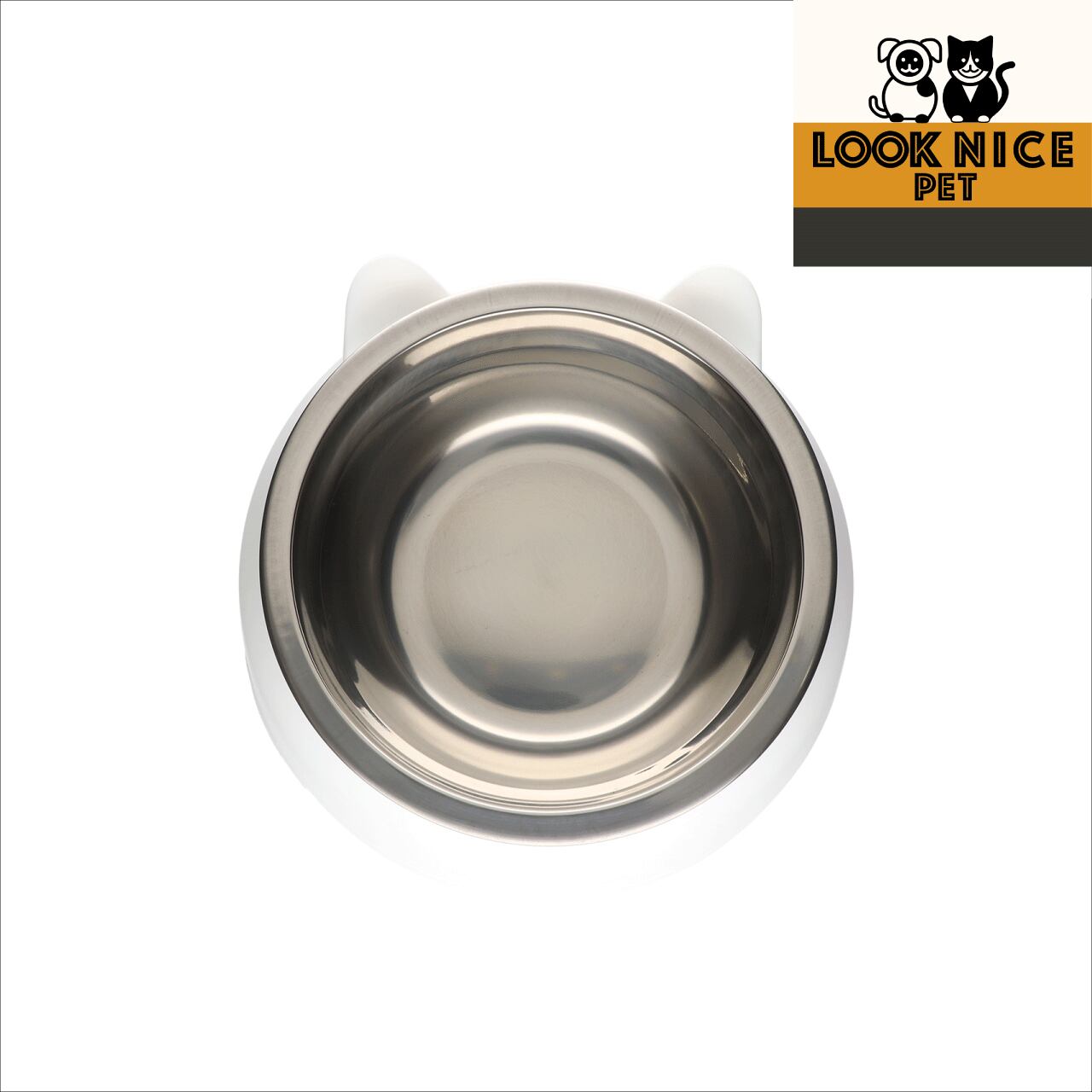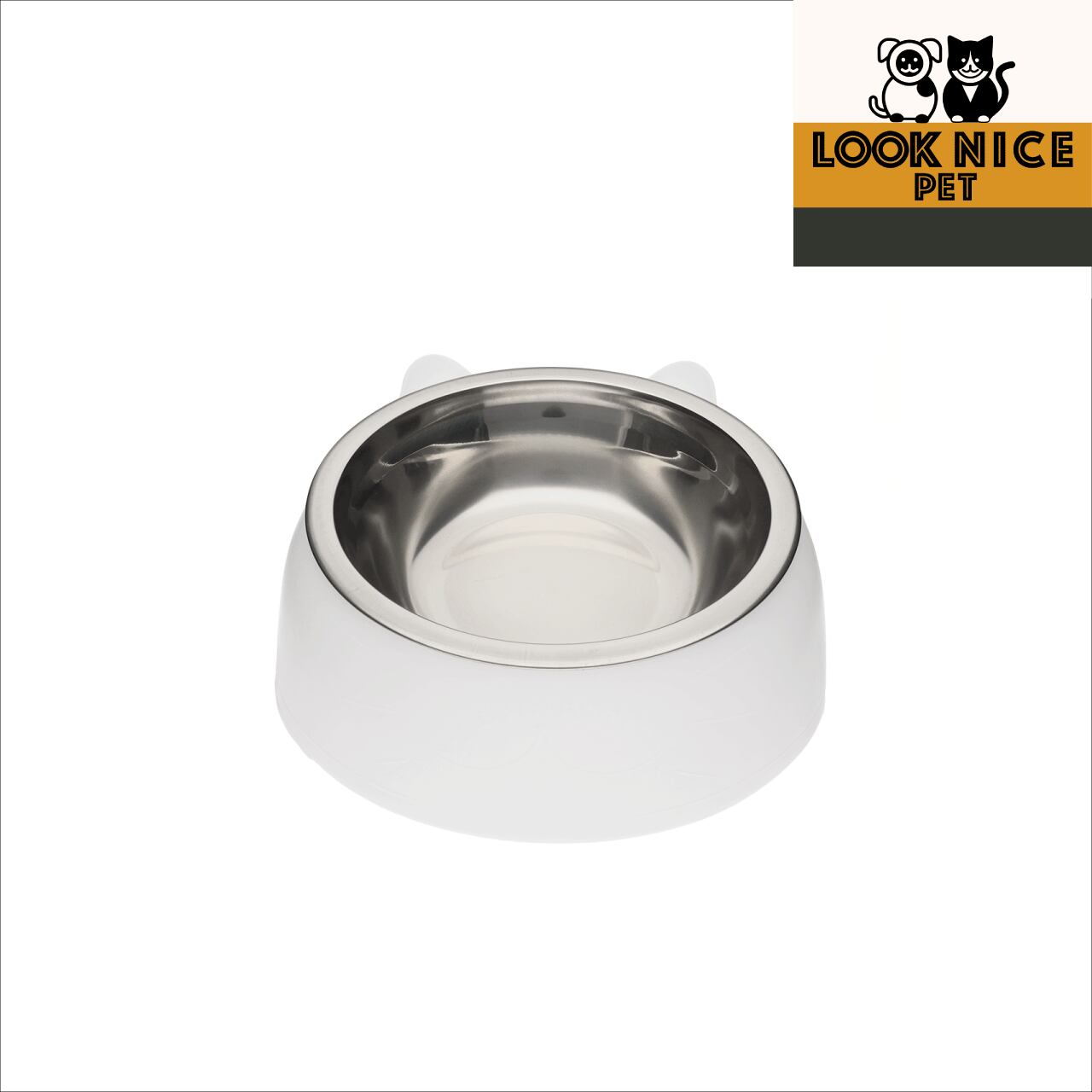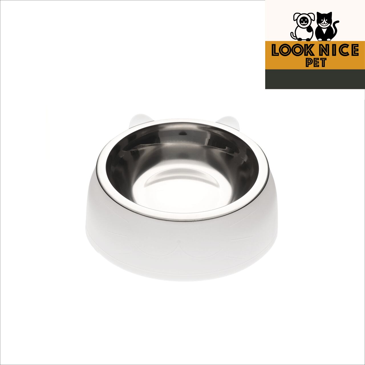 LOOK NICE PET エサ入れ 200ml ホワイト 猫 食器 皿 食べやすい ステンレススタンド かわいい ねこ