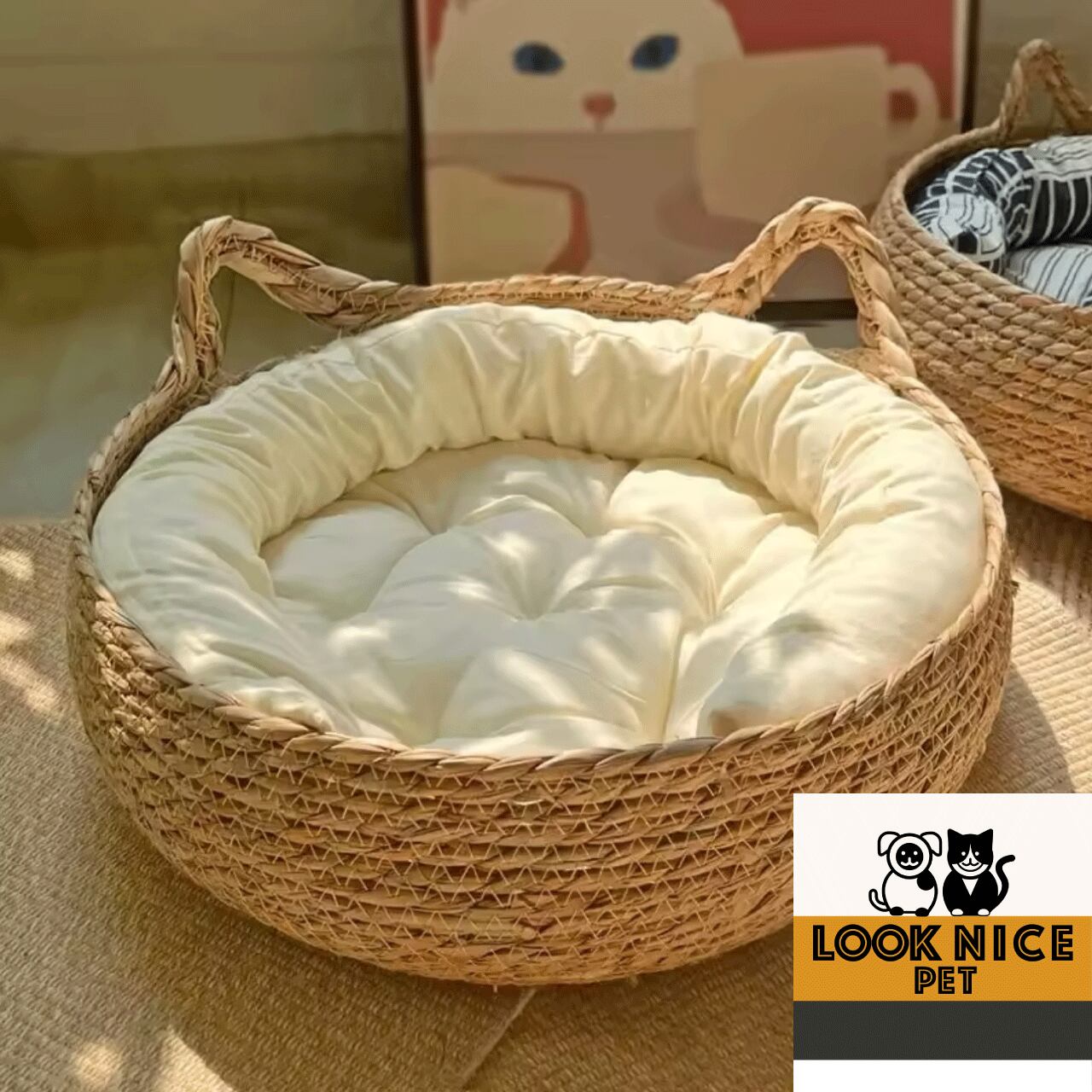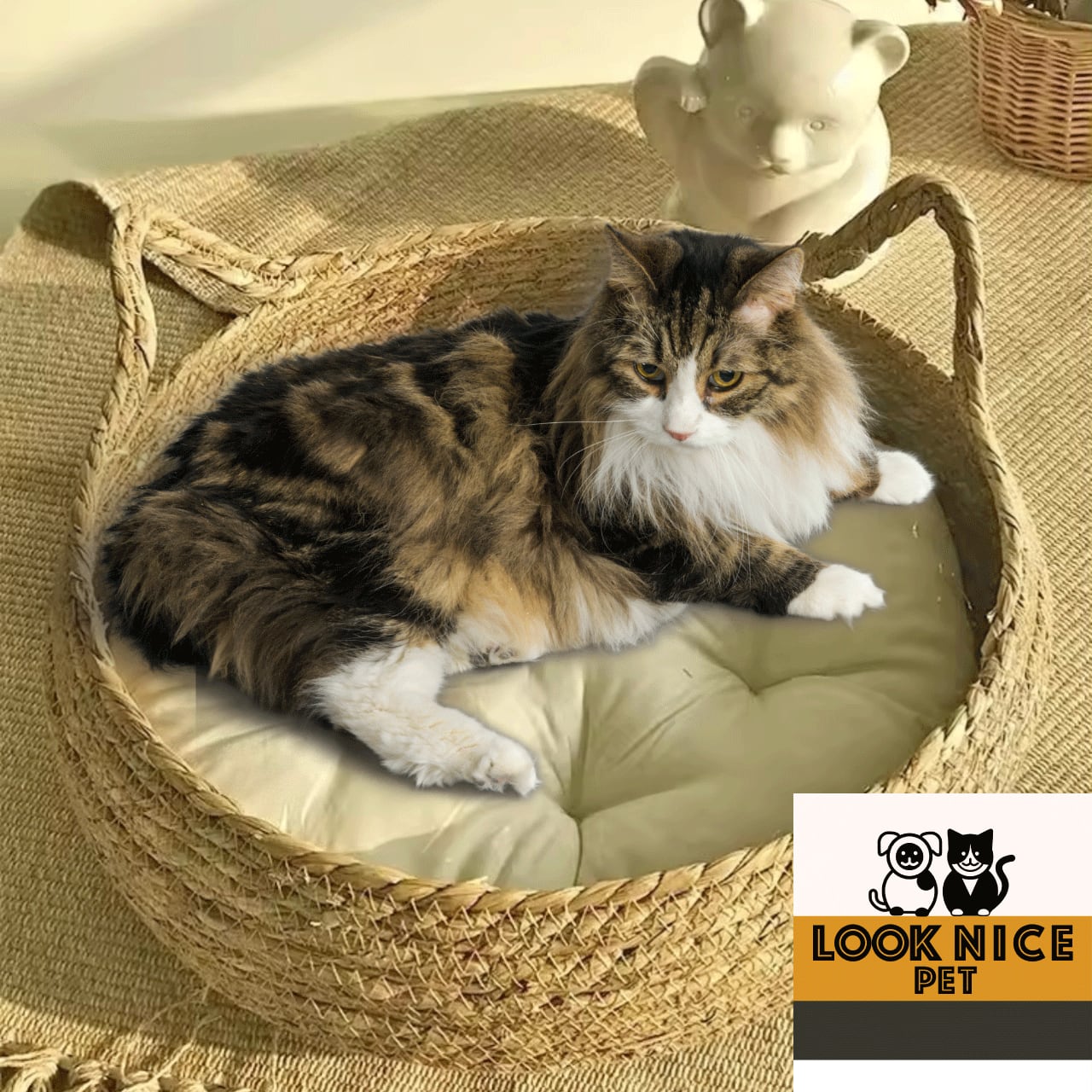 洗練されたスタイルを楽しんで!LOOK NICE PETの「猫ベッド 手作りかご」は、あなたの愛猫にぴったりなリラックススペースを提供する、魅力あふれるアイテムです。この猫ベッドは、かわいい猫耳デザインが特徴で、暖かく柔らかな素材が愛猫を優しく包み込むので、心地よいひとときをお約束します!洗えるパッドが付属しており、お手入れも簡単です。